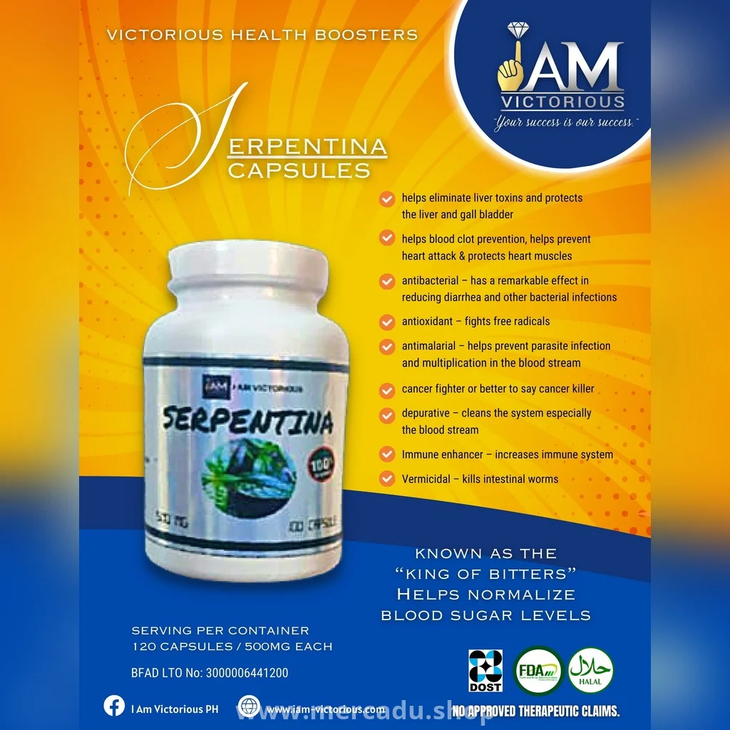 Take charge of your health naturally with IAM Victorious Serpentina Capsules — a powerful herbal supplement traditionally known as the “King of Bitters.” Carefully formulated to support internal cleansing, immune defense, and metabolic balance, this supplement is your daily partner for holistic wellness.