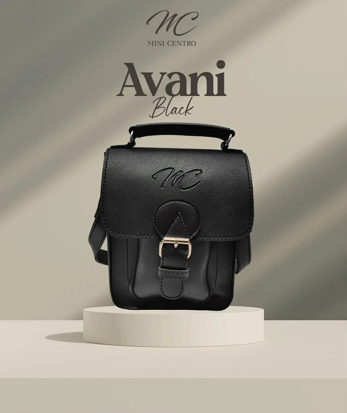 Elevate your everyday style with the Avani Handbag from Mini Centro, a timeless accessory designed for modern elegance. Featuring a structured silhouette with fine stitching details, this handbag is finished with a front flap, an embossed MC logo, and a secure buckle closure for a clean, polished look. The top handle adds a classic touch, making it a versatile piece for both casual and dressier outfits.